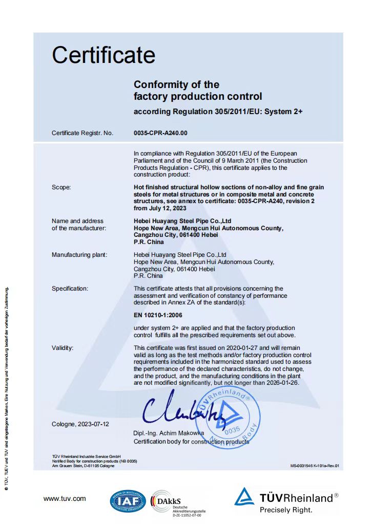 河北華洋鋼管有限公司公司創(chuàng)建于2005年,注冊資金5億元,公司占地面積1000余畝,固定資產12億元,年銷售收入近100億元,現有員工600余人。“華洋牌"高頻直焊鋼管被評為“河北省名牌產品”,年生產能力可達260萬噸,2024年河北華洋鋼管有限公司榮獲河北省百強民營企業(69位),河北省百強制造業(57位)榮譽稱號。